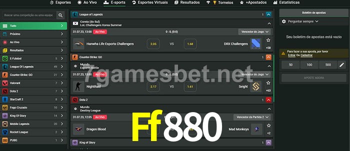 O Ff880 oferece uma grande seleção de opções de apostas em e-sports com probabilidades competitivas